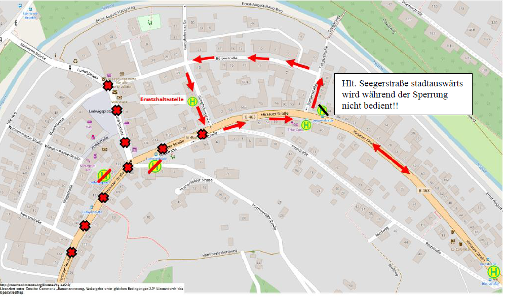 Während der Sperrung können die Haltestellen, Bahnhof Weißenstein, Burggartenstraße, Steinbergsgutstraße, Nagoldfreibad, Äußere Hirsauer Str., Hirsauer Straße und Ludwigsplatz nicht angefahren werden. Der Bus der Linie 3 wird von der Hirsauer Straße über die Seegerstraße, Bülowstraße und Ganghoferstraße umgeleitet.