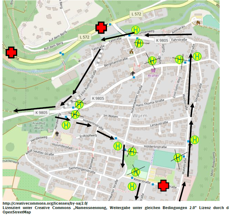In Würm werden die Fahrgäste der Haltestellen: „Friedhof“, Hohenwarter Straße“, „Ritterstr.“, „Höderlinstraße“, „Fahrstraße“ in Richtung Huchenfeld auf die gegenüberliegenden Haltestellen verwiesen.